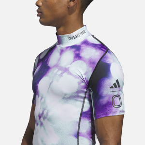 For the ones built to perform when the lights are brightest. The adidas x Overtime Compression Tee delivers a locked-in feel with breathable stretch and bold details throughout. The all-over graphic print amps up the energy. while the Overtime spell-out on the neck and co-branded logos on the sleeve make it clear who’s running the court. Under a jersey or on its own. if you’re wearing this. everyone will know who you rep when you step into the spotlight.?